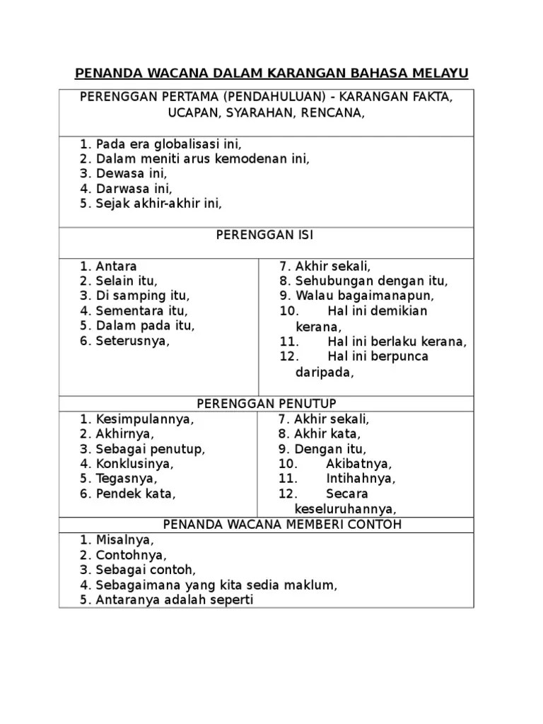 Bahasa melayu spm study tips malay language study notes. English teacher at smk batu lapan sik. Penanda wacana dlm bi, post reply new question . Contextual translation of contoh penanda wacana bahasa english into english. Penanda wacana english truth epistemology. Penanda wacana for english essay writing. I am fluent in english and bahasa melayu | intermediate: Amir asyraf on twitter nah discourse markers or in malay penanda wacana references for dummies. · because, so, therefore, thus, . Furthermore, in addition, not only this, apart from that, besides,.